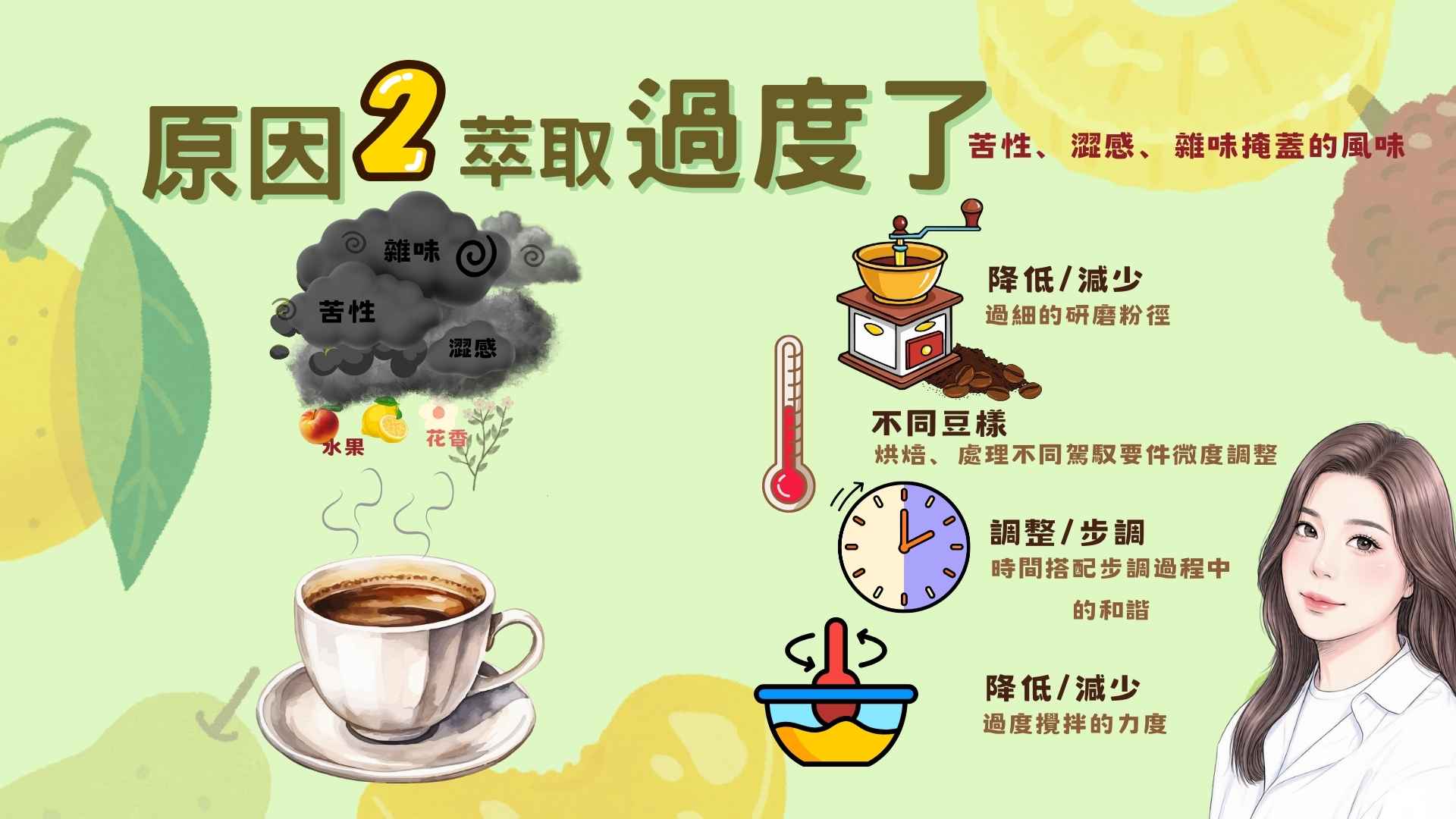 - 判斷練習: 這杯酸度特別突出,是因為水溫太高,還是研磨太粗?從風味結果反向推測可能的原因。