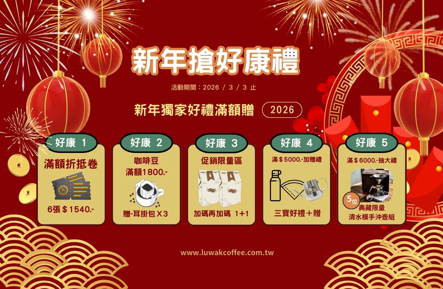 各位咖啡控們注意啦!Luwak Coffee 新年獨家好禮 已經炸場登場,活動一直嗨到 2026/3/3,這波福利不衝真的虧大了!